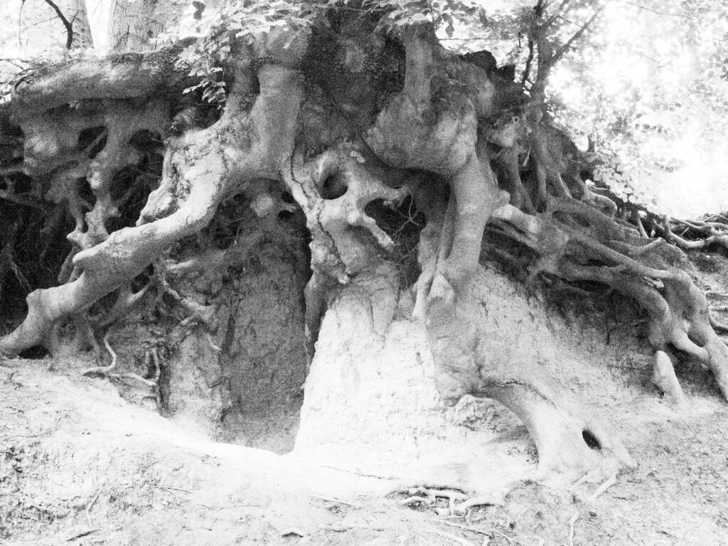 Ich genoss das Kriechen sehr. Mit der Zeit kroch ich genussvoll durch den Wald, in dem ich immer noch lebte. Es war derselbe Wald. Und doch war es ein vollkommen anderer Wald, als der, den ich dachte zu kennen. Diesen gut bekannten Wald hatte ich noch nie gesehen. Es war unmöglich zu sagen, wie anders alles aussah. Jedes Blatt hatte eine andere Farbe. Jedes Geräusch einen anderen Ton. Ich dachte, ich hätte die Äste gekannt, die Bäume. Aber ich kannte sie erst jetzt, wo ich in der Lage war, sie mit meinem ganzen Körper zu spüren. Besonders liebte ich die Wurzeln. Die Wurzeln waren mir vorher gar nicht klar gewesen.